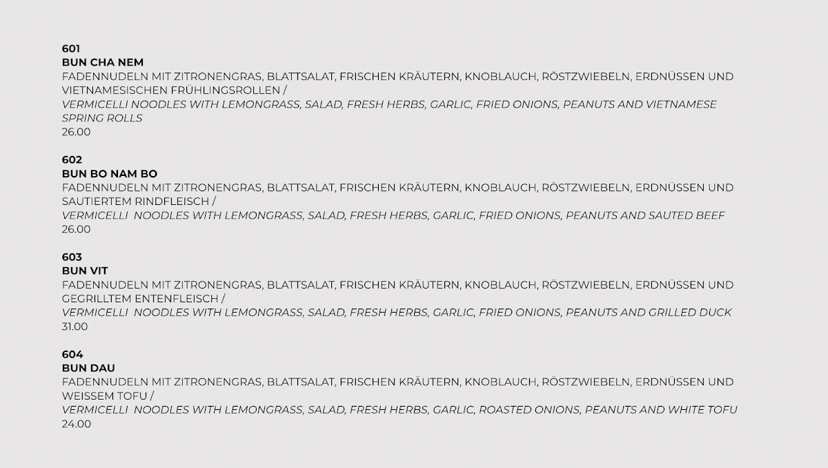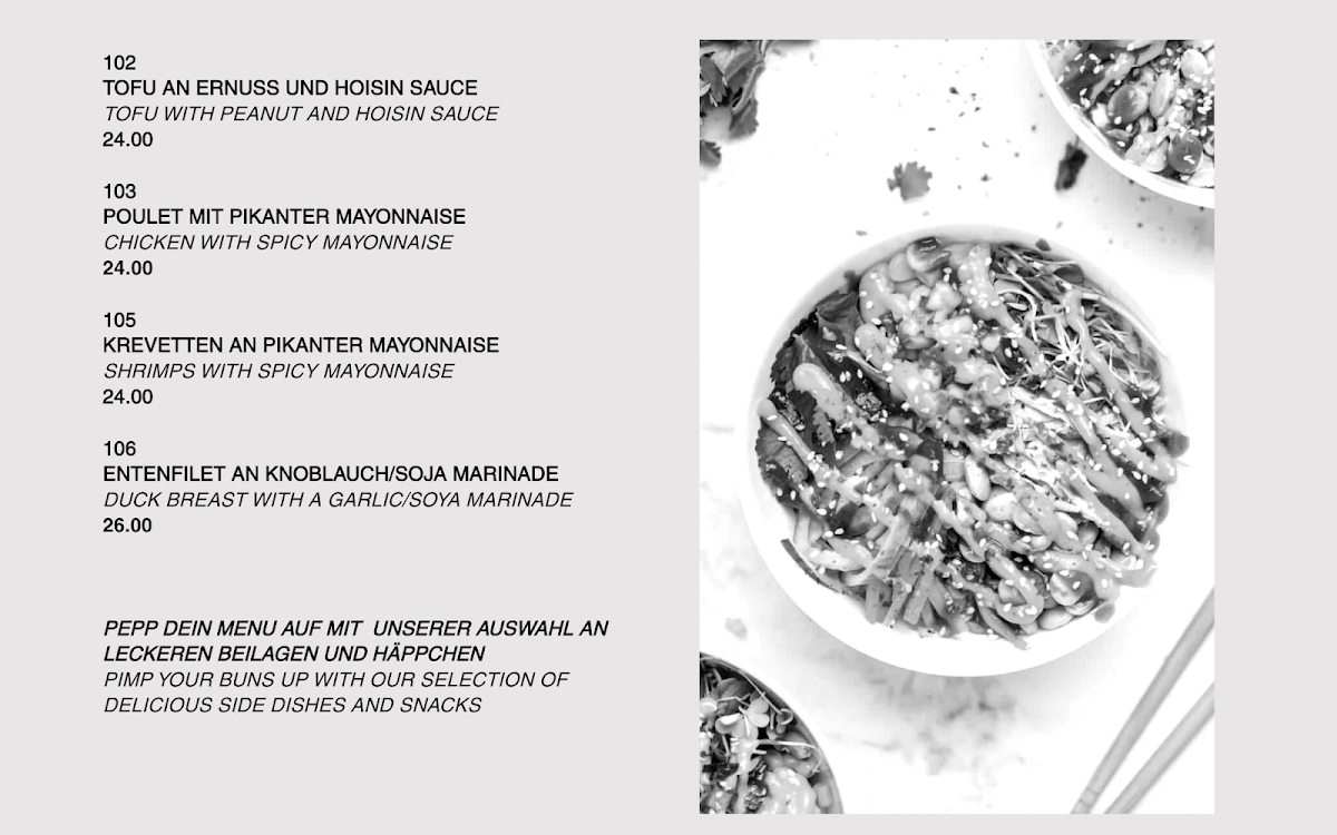 The menu at Bun Brothers & Co. offers a delightful variety of dishes that showcase the rich flavors of Vietnamese cuisine. Each dish is carefully crafted, highlighting fresh ingredients and authentic flavors. The Custard Buns stand out as a sweet and savory treat, perfect for those looking for a unique snack. For a heartier meal, the Pho Dac Biet delivers a flavorful, aromatic experience with its mix of tender beef and savory broth, a classic Vietnamese dish that never disappoints. The Bun Bo Nam Bo offers a satisfying combination of vermicelli noodles, beef, and a tangy dressing, perfect for those who enjoy vibrant, fresh flavors. For a lighter option, the Nudeln Mit Gemüse Und Tofu caters to vegetarian diners with its mix of vegetables and tofu in a delicate sauce. Lastly, the Com Rang Rau Chicken is a standout dish, featuring a flavorful fried rice with tender chicken and vegetables, making it a great choice for anyone craving something hearty and comforting. Bun Brothers & Co. offers an impressive menu that caters to all tastes, delivering both traditional Vietnamese dishes and inventive options with a personal twist.
